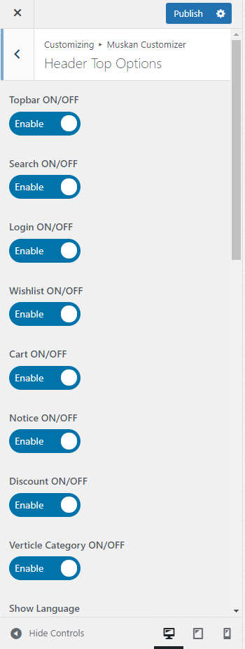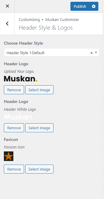Here includes various options to control the header style , footer style and Logo Setting on each page.